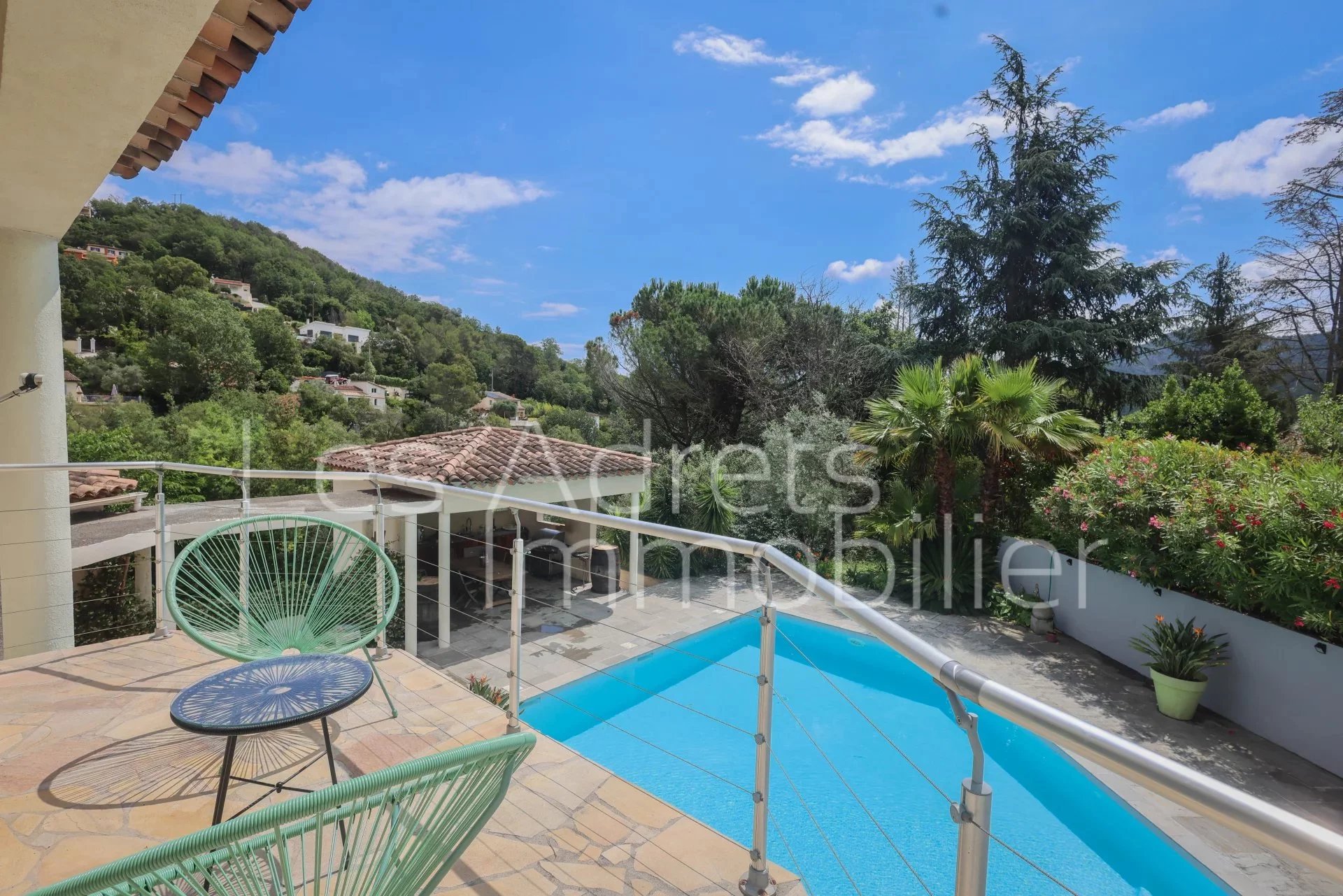 In an intimate setting lush with vegetation, this spacious contemporary property of 242 m² is set in wooded grounds of 2100 m²,