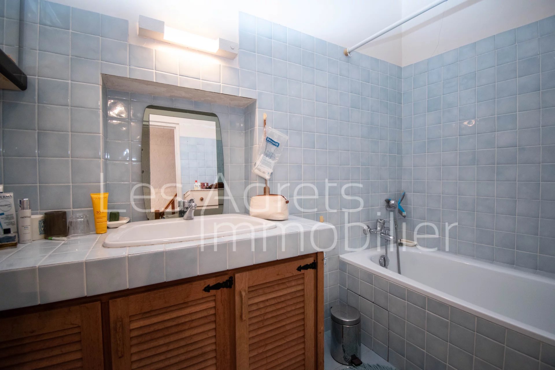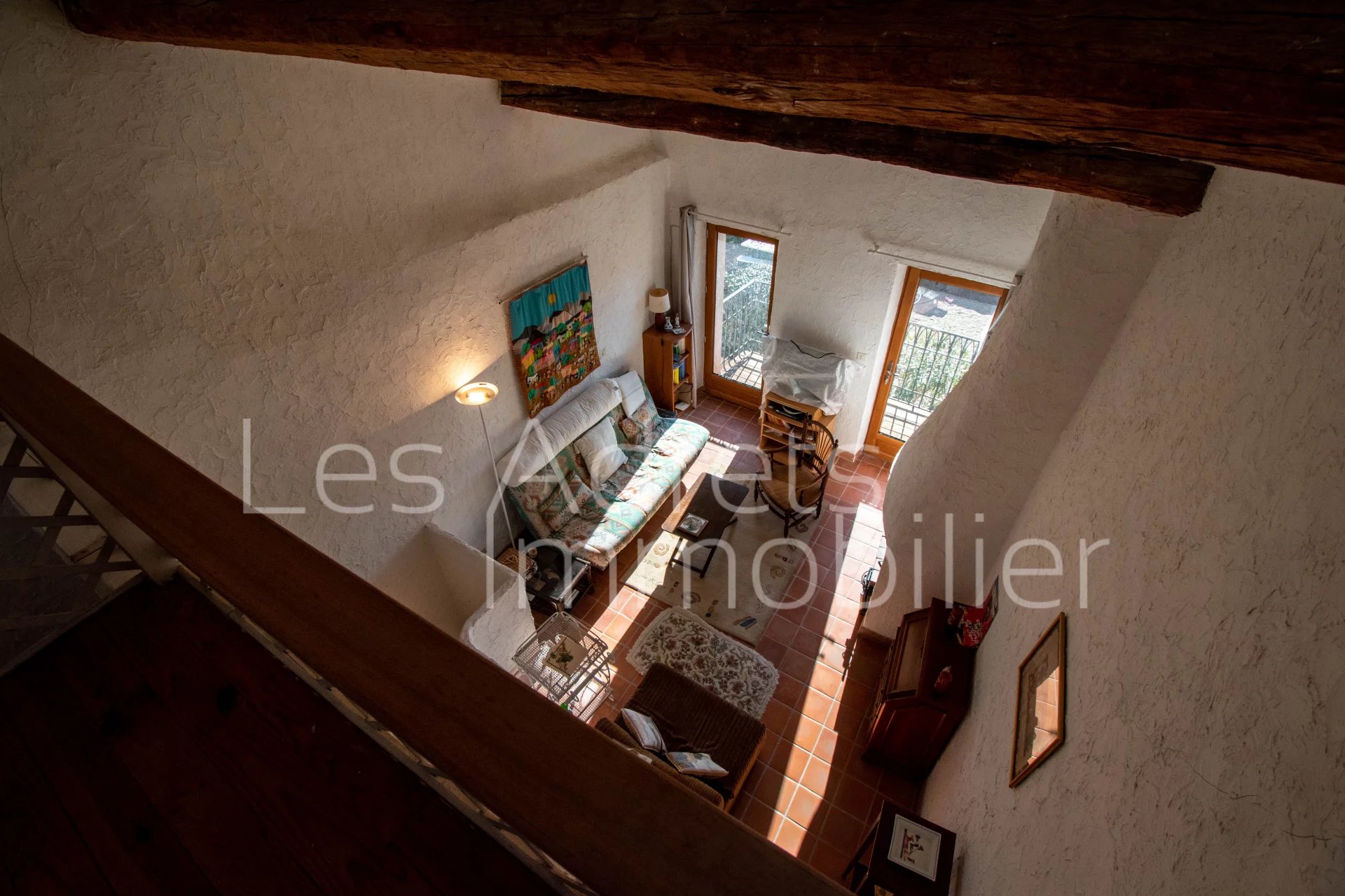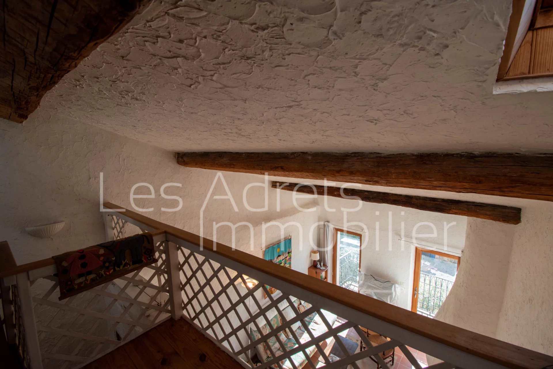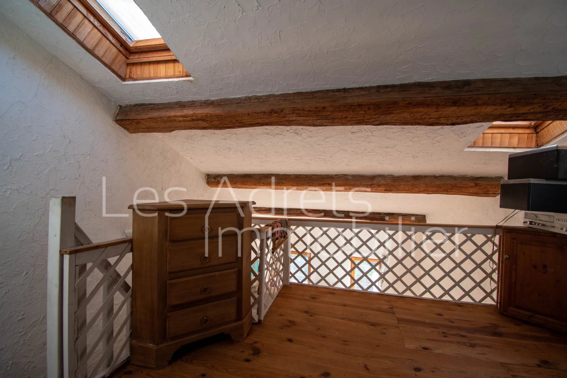 Au premier un séjour lumineux avec balcon et cheminée, disposant d'un plafond cathédrale laissant apercevoir une mezzanine en bois éclairée par les velux,