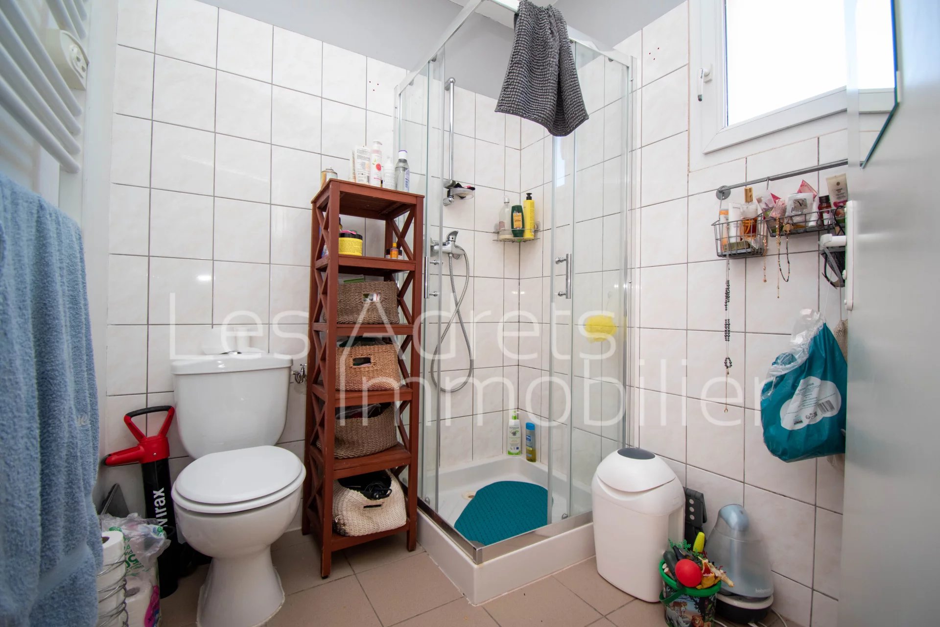 - A l'étage: un dégagement, une chambre avec placard, un bureau, une salle de bain et un wc.